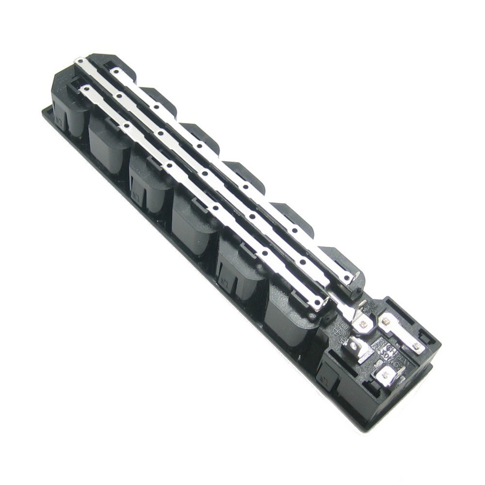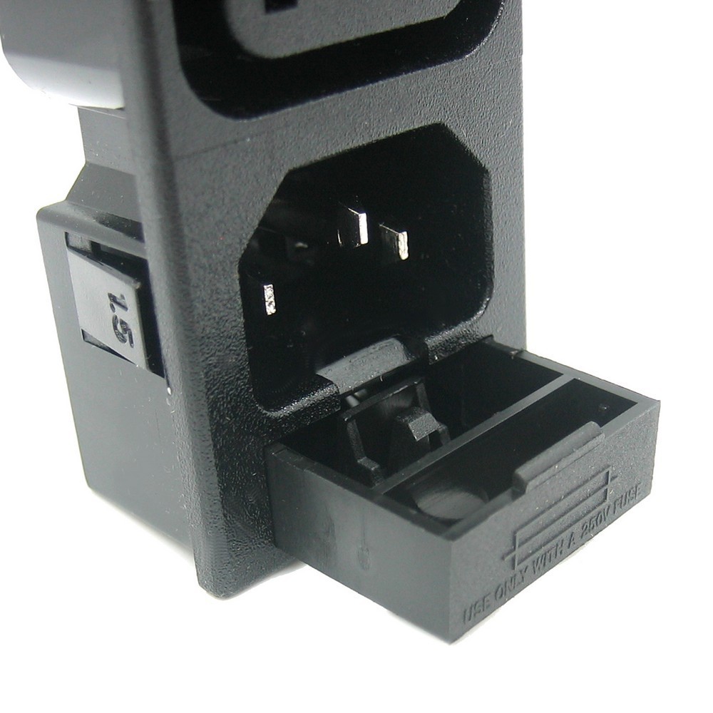 Разъем IEC 320 C13+C14. 220В. вилка/розетка, на блок, 3 контакта, крепление защелка. Количество секций вилка: 1 Количество секций розетка: 6. С отсеком для предохранителя