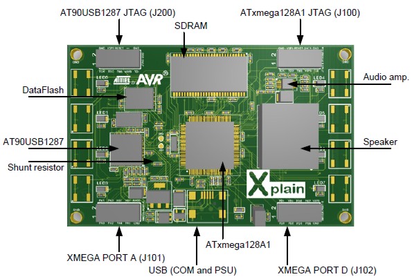 ATAVRXPLAIN – отладочный набор на базе микроконтроллера ATxmega128A1.