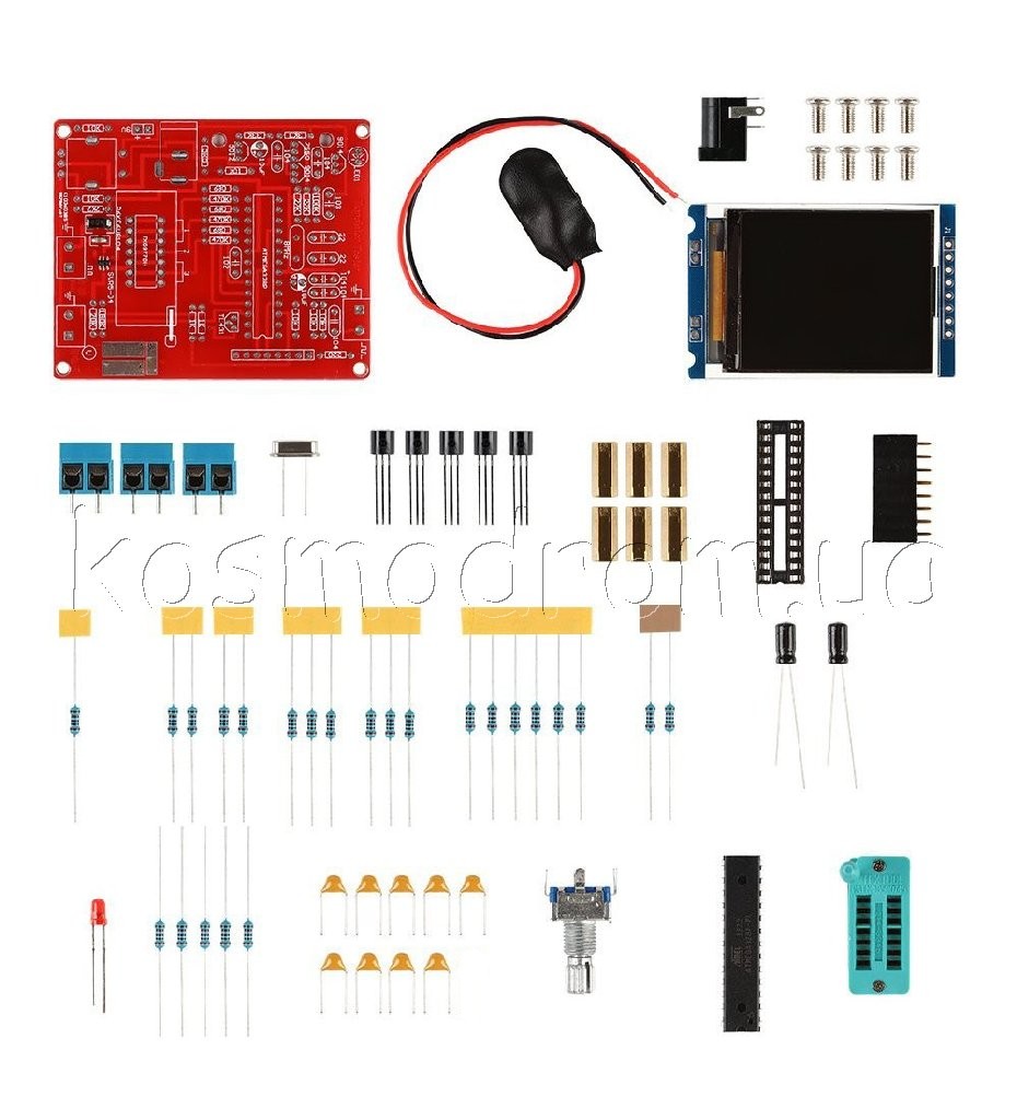 Прибор предназначен для проверки и определения параметров различных электронных элементов, таких как элементы питания, резисторы, конденсаторы, катушки индуктивности, диоды, транзисторы, симисторы т.п. Информация отображается на графическом дисплее (160х128 точки, 16 бит.) Основой является микроконтроллер ATmega 328. Питание 9 В. (крона) в комплект не входит. Также в качестве источника питания можно использовать внешний источник 7...12 В.