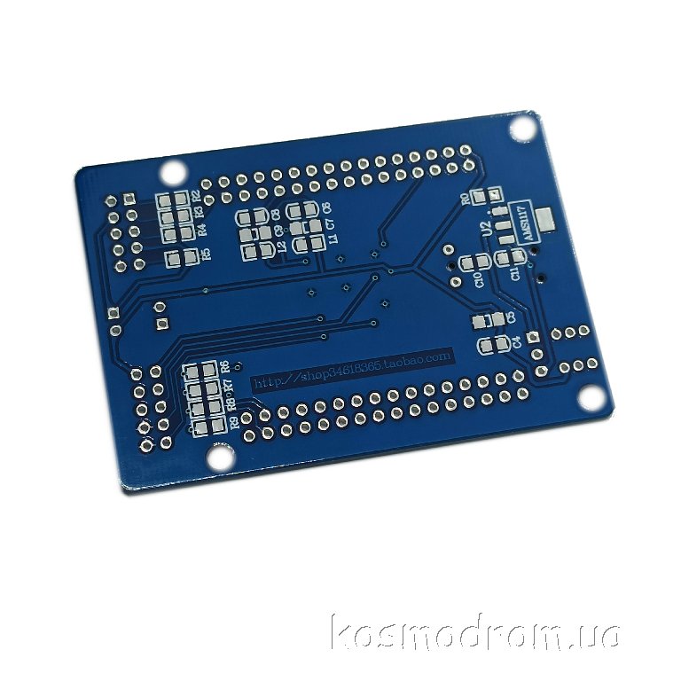 Печатная плата для микроконтроллеров AVR ATmega64/128 в корпусе TQFP предназначена для самостоятельной сборки отладочной платы. На плате есть контактные площадки для всей необходимой обвязки и кнопок рестарта и выключения питания.