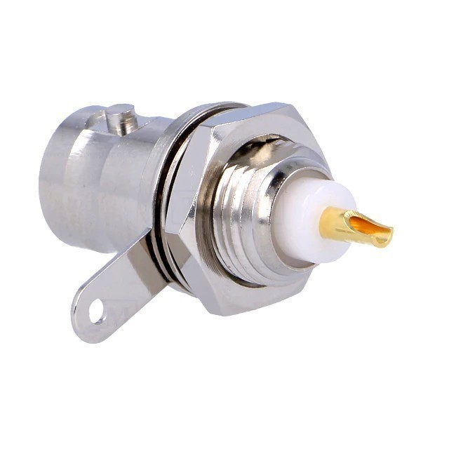Фото может отличаться от реального вида предмета, но это не влияет на основные характеристики изделия | BNC-коннектор B6351B1ND3G50 Гнездо, BNC, мама , прямой, 50 Ом, пайка, на панель, POM, макс.3,2мм