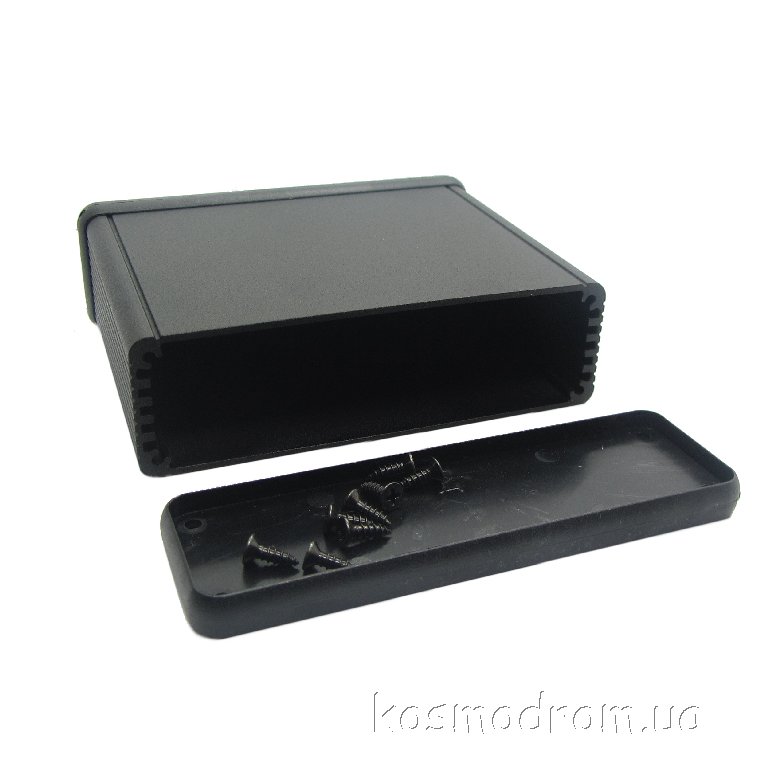 Фото может отличаться от реального вида предмета, но это не влияет на основные характеристики изделия | Корпус BIS-L1-BOX-080BL-31BL Корпус алюминиевый, черненый, анодированный, с пластиковыми крышками, размеры (ДхШхВ): 80х103х30,5 мм. Цвет крышек: черный