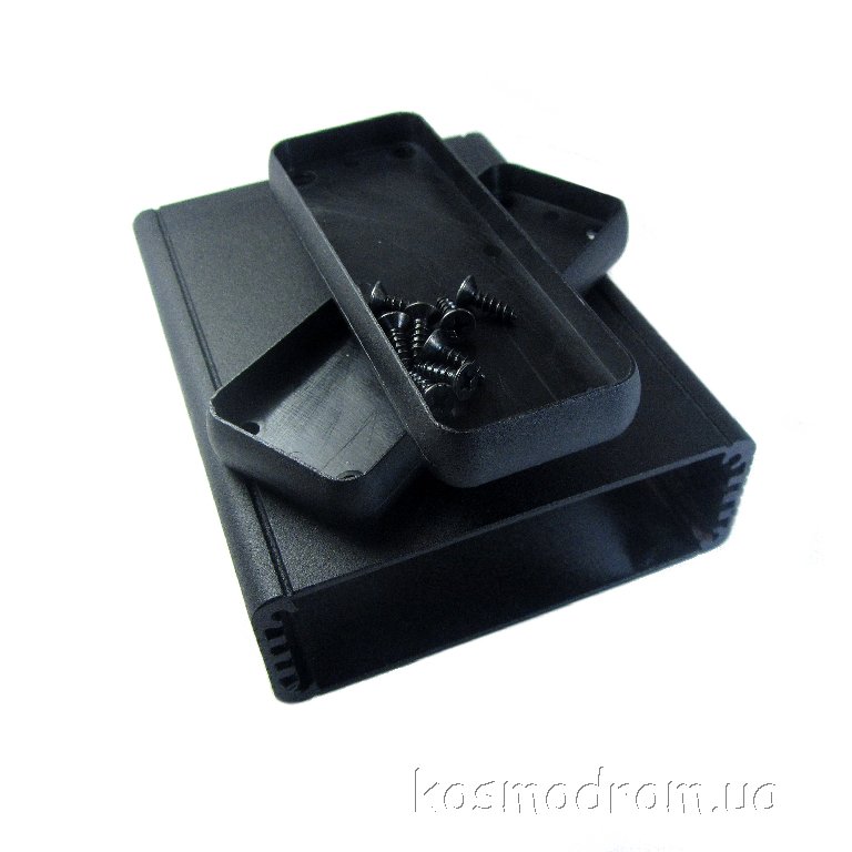 Фото может отличаться от реального вида предмета, но это не влияет на основные характеристики изделия | Корпус BIS-M1-BOX-100BL-31BL Корпус алюминиевый, черненый, анодированный, с пластиковыми крышками, размеры (ДхШхВ): 100х78х27мм. Цвет крышек: черный