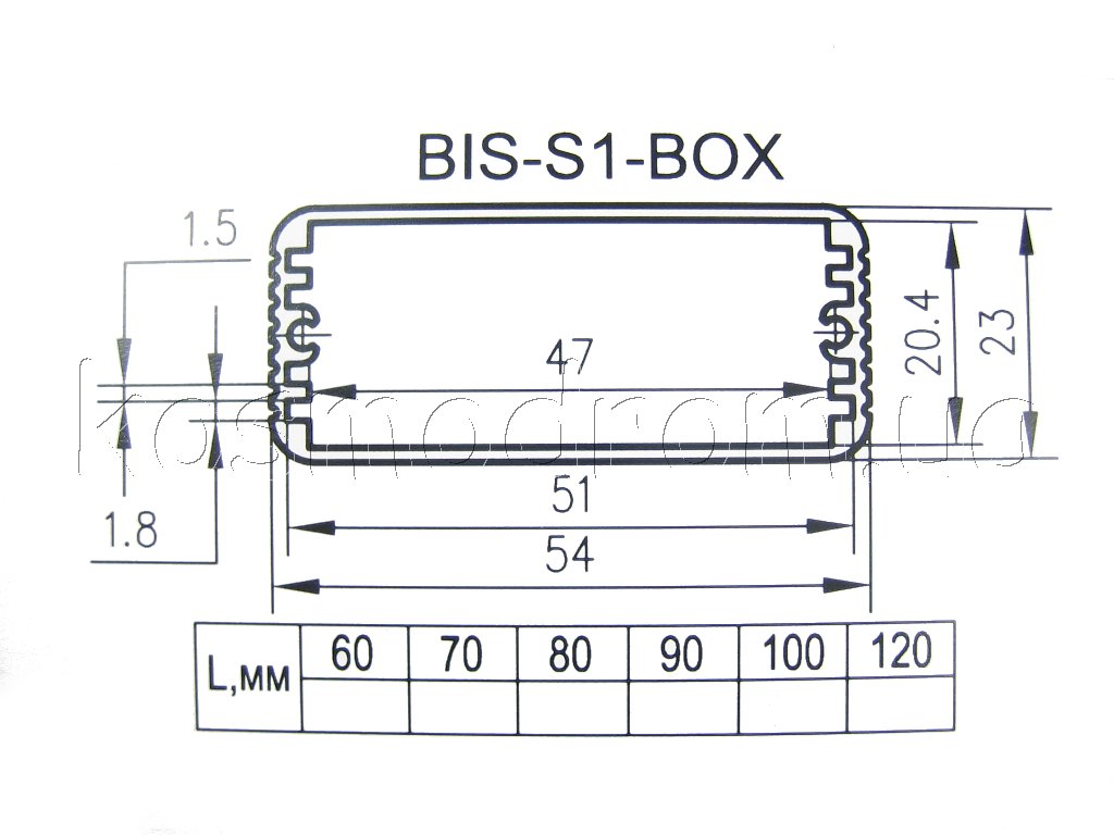 Фото может отличаться от реального вида предмета, но это не влияет на основные характеристики изделия | Корпус BIS-S1-BOX-090-01GR Корпус алюминиевый, анодированный, с пластиковыми крышками, размеры (ДхШхВ): 90х54х23мм. Цвет крышек: серый.
