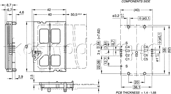 | | | |  Фото может отличаться от реального вида предмета, но это не влияет на основные характеристики изделия | Держатель карт памяти C702-10M008-272 Разъем Smart Card на плату
