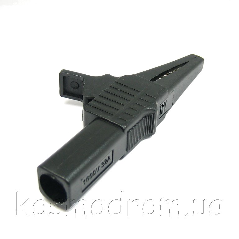 Фото может отличаться от реального вида предмета, но это не влияет на основные характеристики изделия | Зажим типа крокодил CB-32A-85mm Зажим тестерный. Крокодил. Длина: 85 мм. Цвет: Черный. Диаметр гнезда: 4 мм. 32А. 1000 В