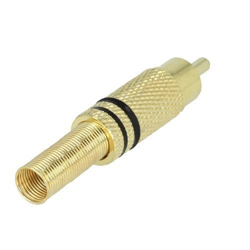 Фото может отличаться от реального вида предмета, но это не влияет на основные характеристики изделия | Разъем RCA CC-010B "Вилка, RCA, ""папа"", с амортизатором, прямой, пайка, позолота, 5мм"