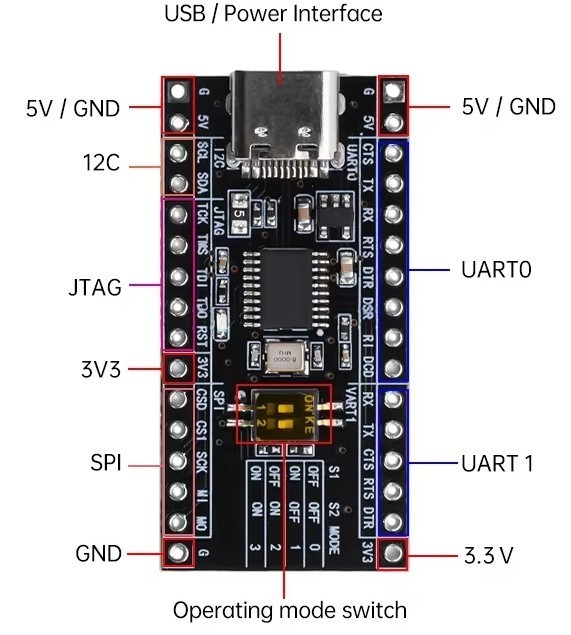 • Чип — высокоскоростной чип WCH CH347 USB-UART, I2C, SPI и JTAG