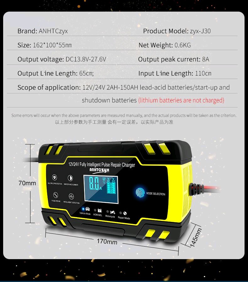 Интеллектуальное зарядное устройство для автомобильного аккумулятора ZYX-J30 в автоматическом режиме зарядит или восстановит ваш аккумулятор.