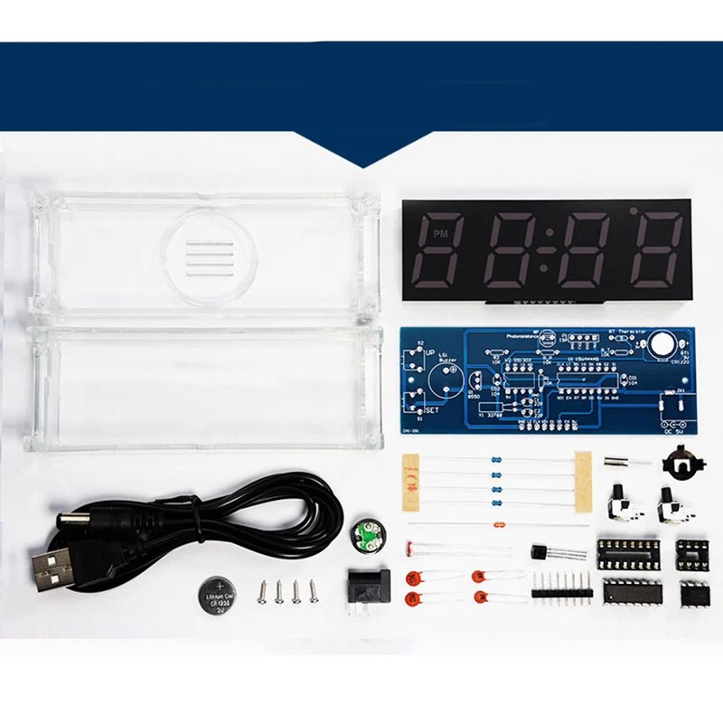 Фото может отличаться от реального вида предмета, но это не влияет на основные характеристики изделия | Электронный набор CLOCK-4DIG-KIT-Multicolor Набор для самостоятельной сборки электронных часов c термометром и регулировкой яркости свечения дисплея, цвет свечения Multicolor. Размеры платы: 100х35 мм.