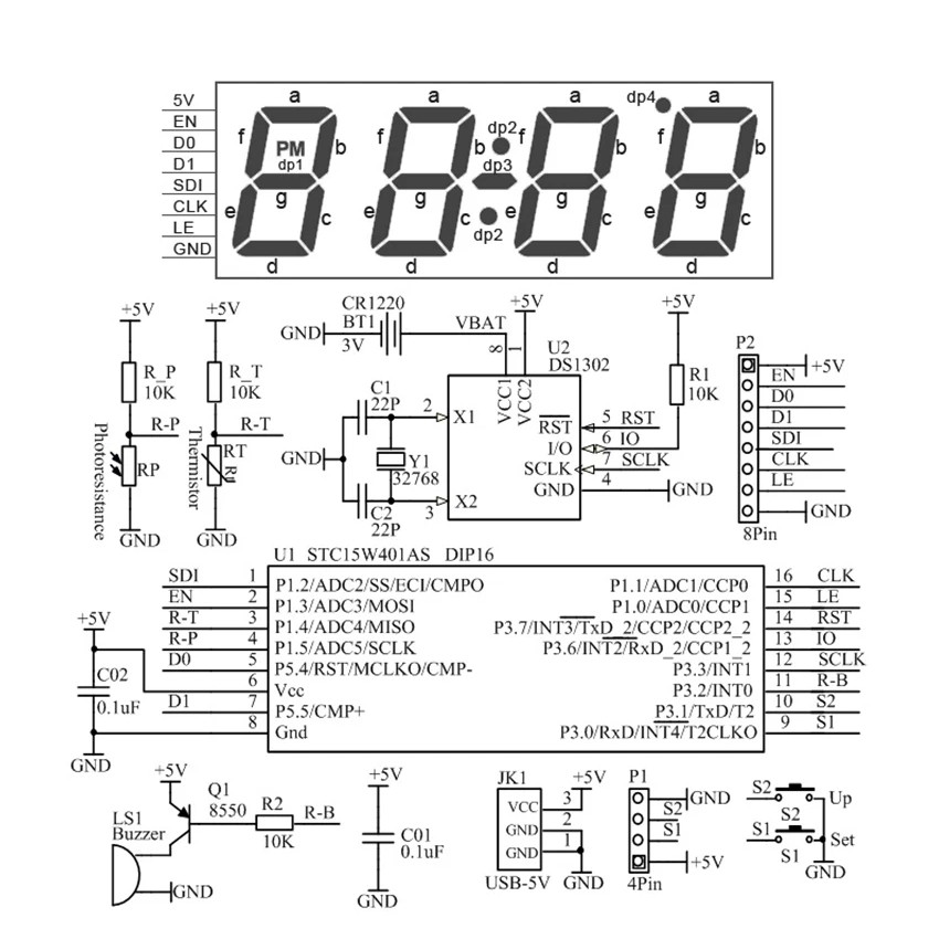 Функции: время, дата, температура, будильник.