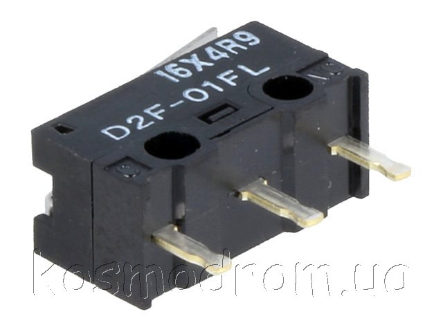 Фото может отличаться от реального вида предмета, но это не влияет на основные характеристики изделия | Микропереключатель D2F01FLA Микропереключатель, с рычагом, SPDT, 0,1A/30VDC, ON-(ON), 1, IP40
