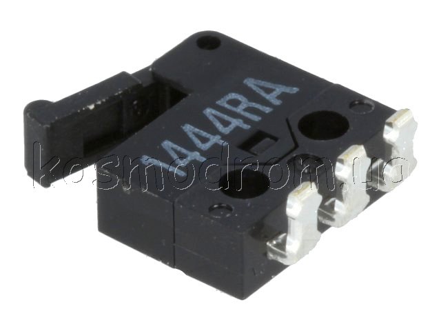 Фото может отличаться от реального вида предмета, но это не влияет на основные характеристики изделия | Микропереключатель D2MQ-4L-1-R Микропереключатель, с рычагом, SPDT, 0,5A/30VDC, ON-(ON), Кол-во фикс. положений: 1, IP40, Выводы: на печатную плату, угловые, правые