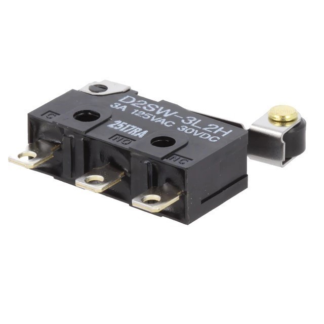 Фото может отличаться от реального вида предмета, но это не влияет на основные характеристики изделия | Микропереключатель D2SW-3L2H Микропереключатель SNAP ACTION, 3A/125ВAC, 3A/30VDC, SPDT, Пол: 2
