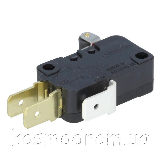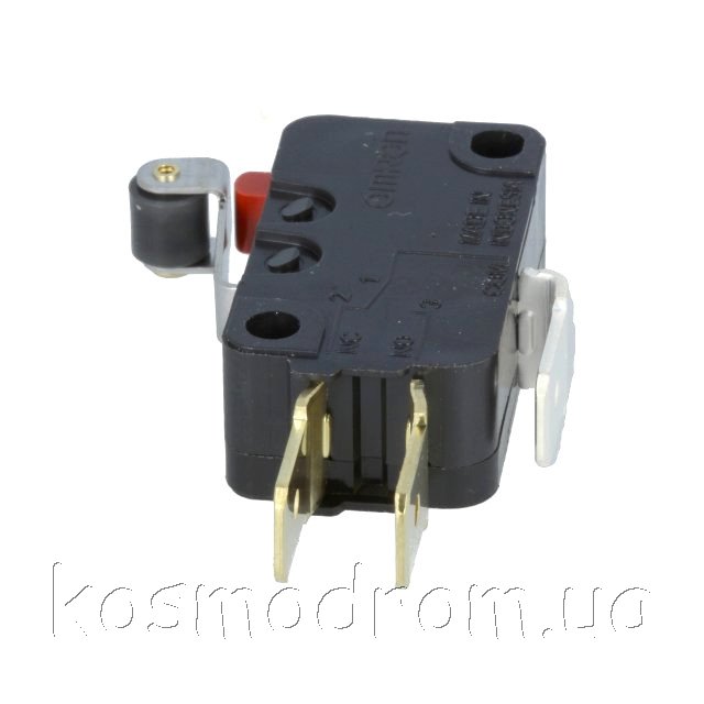 Фото может отличаться от реального вида предмета, но это не влияет на основные характеристики изделия | Микропереключатель D3V-165-1C5 с рычагом (с роликом). SPDT , Алгоритм работы: ON-(ON)