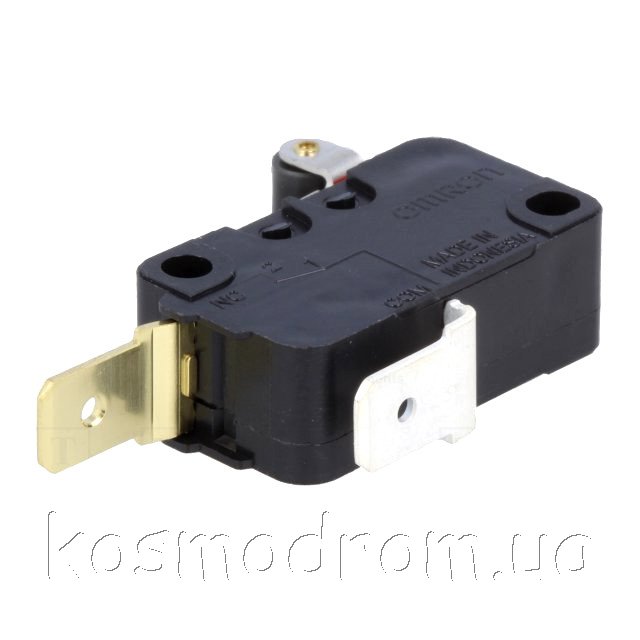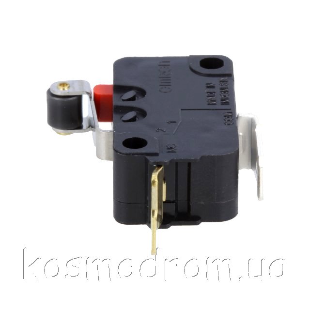 Фото может отличаться от реального вида предмета, но это не влияет на основные характеристики изделия | Микропереключатель D3V-165-2C4 с рычагом (с роликом). SPST-NC, Алгоритм работы: ON-(OFF)