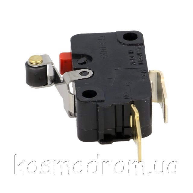 Фото может отличаться от реального вида предмета, но это не влияет на основные характеристики изделия | Микропереключатель D3V-165M-3C5 с рычагом (с роликом). SPST-NO, Алгоритм работы: OFF-(ON)