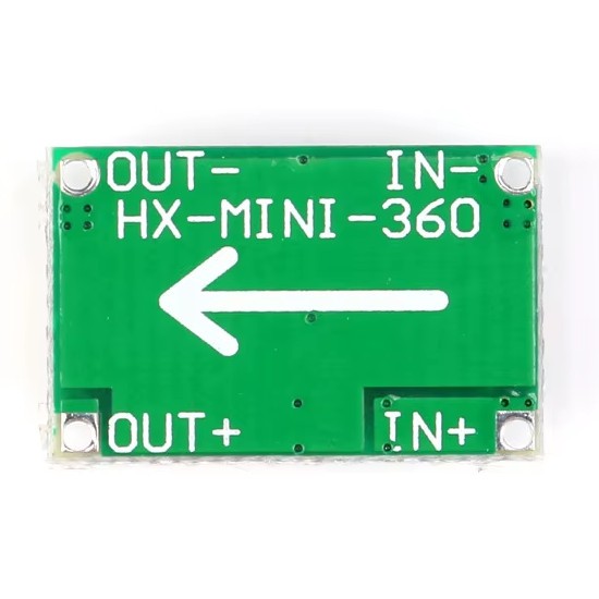 Mini360 (DSN-MINI-360) - миниатюрный понижающий DC-DC преобразователь. Компактный модуль, понижающий напряжение. Обладает высокой эффективностью (до 96%), широким диапазоном входных и выходных напряжений, высоким выходным током (до 3А в пике). Так же оснащен защитой от перегрева и короткого замыкания. Очень компактный (17*11*3,8 (мм), что позволяет использовать его в самых современных любительских и профессиональных конструкциях. Технические характеристики: Входное напряжение: 4.75 - 20 В. Выходное напряжение: 1 - 17 В (регулируемое).Выходной ток: долговременный 1 А, с охлаждением 1.8 А, максимальный 2 А.КПД преобразователя: до 96%.Уровень пульсации: < 30 мВ. Защита: от перегрева > 160 °C , от короткого замыкания по выходу.