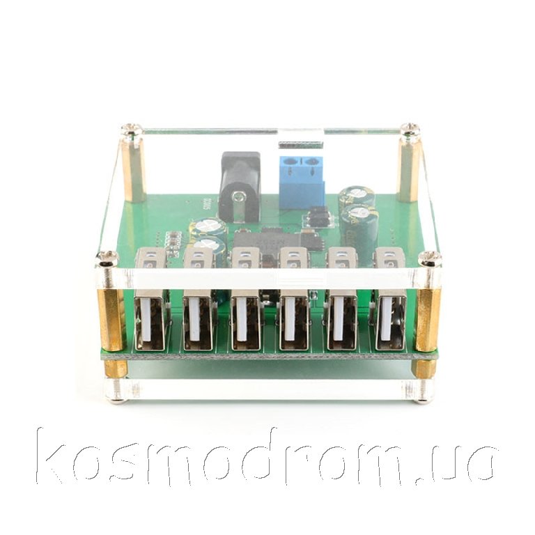 Понижающий DC-DC преобразователь. Входное напряжение: 10...40 В. Выход: 6xUSB. Макс. мощность: 40 Вт.