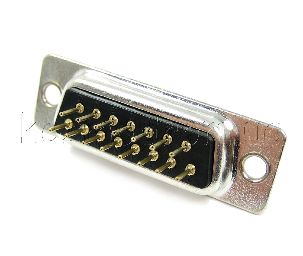 Разъемы стандарта D-SUB, двухрядные, в металлическом корпусе для навесного монтажа. Могут устанавливаться на блок, в пластиковый либо металлический корпус. Используются очень широко в компьютерах (COM,LPT). Разъемы серии D-SUB (полное название D -Subminiature) состоят из контактной колодки со штыревыми контактами в два, три или четыре ряда причем количество контактов в первом ряду на один больше, чем во втором. Контакты разъема защищены металлическим кожухом, напоминающим по форме букву D, благодаря чему исключается возможность неправильного соединения.