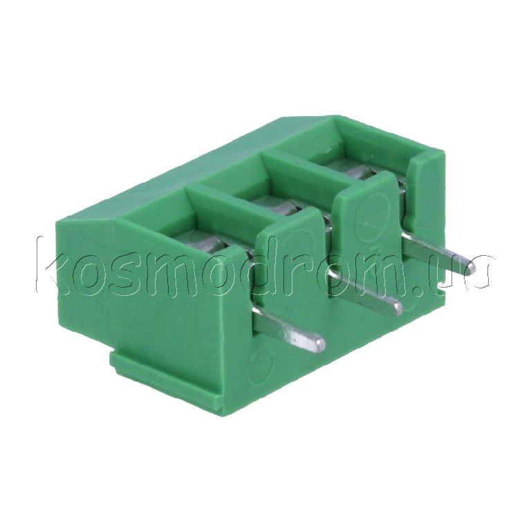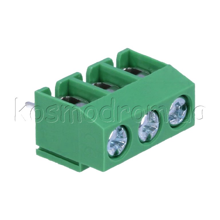 Клеммник винтовой, с защитой провода, шаг 5мм.контактов 3. 300В.10А. зеленый