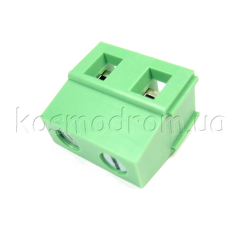 Клеммник винтовой,с рельефной обоймой,шаг 7,5мм.контактов 2:300В.15А. зеленый