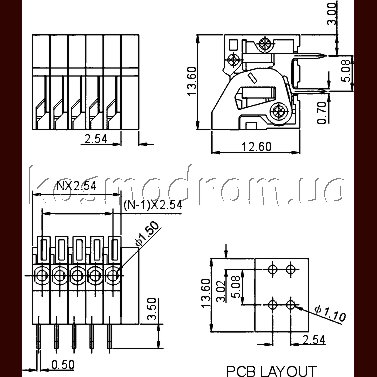 2.5 мм, 2.54 мм, 3.5 мм, 3.81 мм, 3.96 мм, 5.00 мм, 5.08 мм, 7.50 мм, 7.62 мм