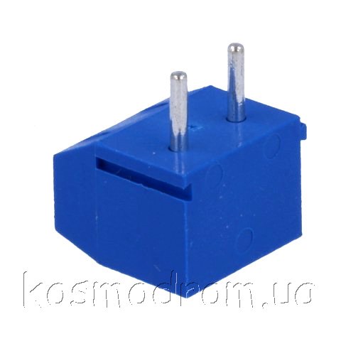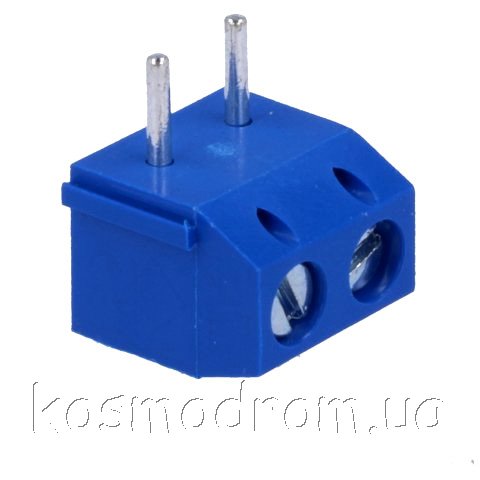 Винтовой клеммник, с защитой провода, угловой, шаг 5мм, контактов 2, 300В.15А. синий