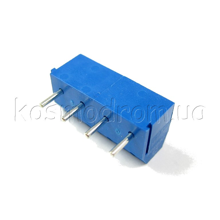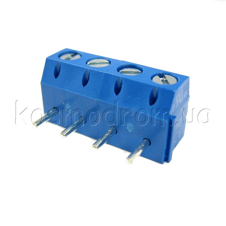 Винтовой клеммник, с защитой провода, угловой, шаг 5мм, контактов 4, 300В.15А. синий