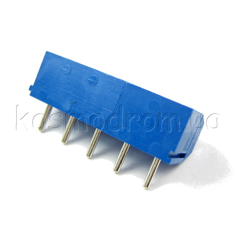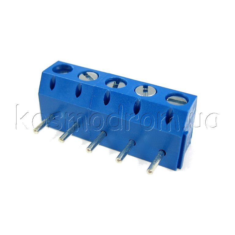 Винтовой клеммник, с защитой провода, угловой, шаг 5мм, контактов 5, 300В.15А. синий
