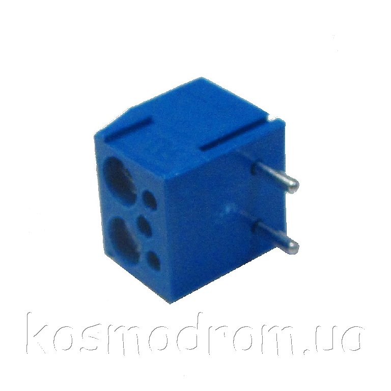 Винтовой клеммник,с защитой провода,шаг 3,81 мм,контактов 2,латунь луженая,300В.7А. синий, угловой