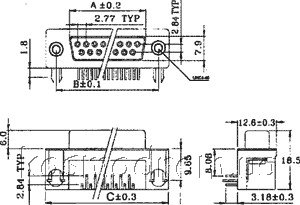 D-SUB коннектор для монтажа на плату угловой.
