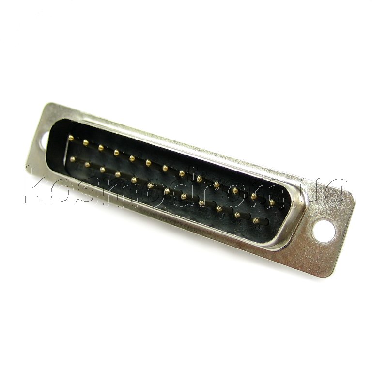 Разъемы стандарта D-SUB, в металлическом корпусе для монтажа в плату под углом 90 градусов. Используются очень широко в компьютерах (VGA, SVGA). Разъемы серии D-SUB (полное название D -Subminiature) состоят из контактной колодки со штыревыми контактами в два, три или четыре ряда причем количество контактов в первом ряду на один больше, чем во втором. Контакты разъема защищены металлическим кожухом, напоминающим по форме букву D, благодаря чему исключается возможность неправильного соединения.