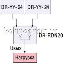 Схема параллельного включения модулей DR-YY-24, DRP-YYY-24, DRT-YYY-24 (где «YYY» -