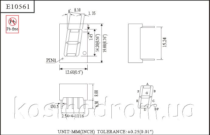 Индикатор относится к линейке односимвольных семисегментных индикаторов с