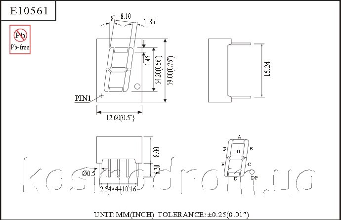 линейке односимвольных семисегментных индикаторов с высотой символа 0,56