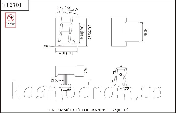 линейке односимвольных семисегментных индикаторов с высотой символа 23.0