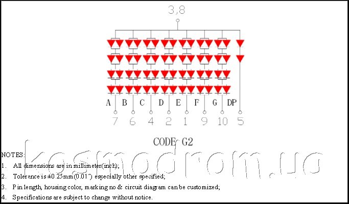 индикатор имеет также восьмой сегмент, который изображен в виде точки.