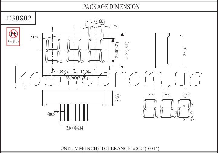 Индикатор относится к линейке трехсимвольных семисегментных индикаторов с