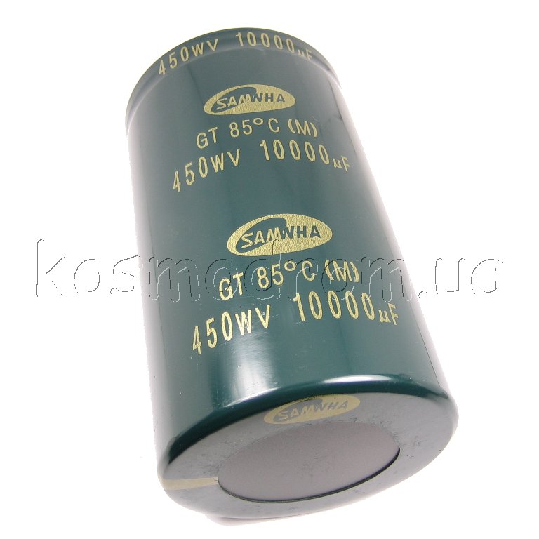 Фото может отличаться от реального вида предмета, но это не влияет на основные характеристики изделия | Конденсатор электролитический ECAP-GT-10000mkf - 450v (GT) Алюминиевый электролитический конденсатор общего применения с винтовым креплением, жеcткие выводы. Рабочая температура: -25...85 С. 10000 мкФ. 450 В. Размеры: 89х150 мм. Временно нет на складе...