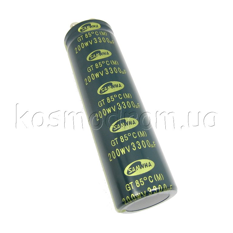 Фото может отличаться от реального вида предмета, но это не влияет на основные характеристики изделия | Конденсатор электролитический ECAP-GT-3300mkf - 200v (GT) Алюминиевый электролитический конденсатор общего применения с винтовым креплением, жесткие выводы. Рабочая температура: -25...85 С. 3300 мкФ. 200 В. Размеры: 35х120 мм.