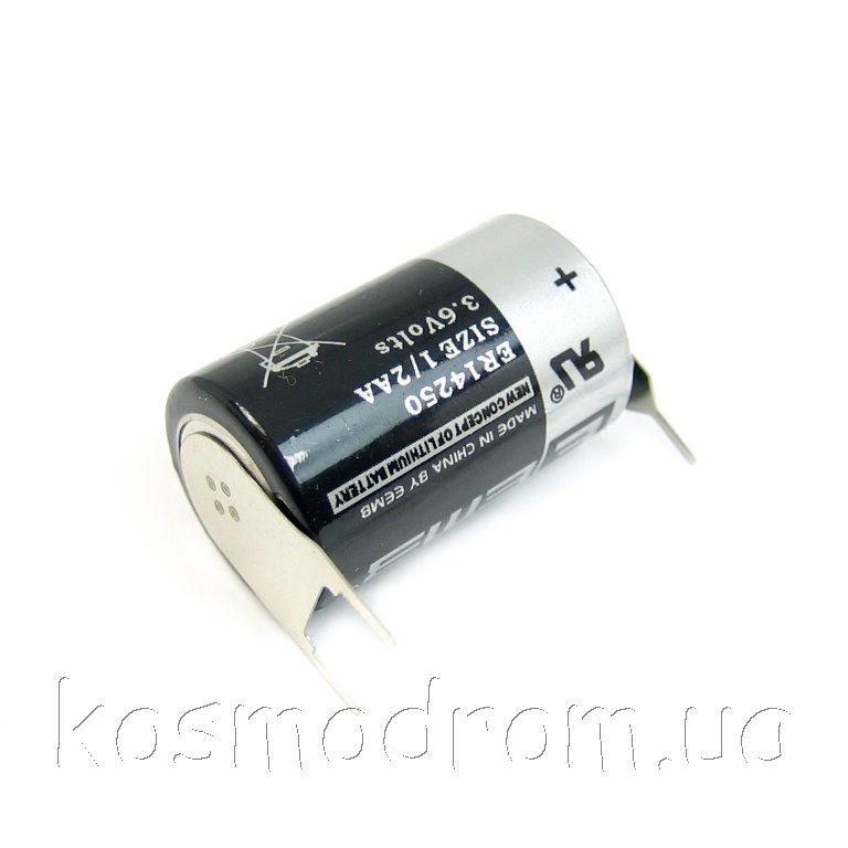 Фото может отличаться от реального вида предмета, но это не влияет на основные характеристики изделия | Элемент питания литиевый ER14250-VX Li, SOCl2 батарея типоразмера 1/2AA номинальным напряжением 3.6 В ёмкостью 1.2 Ач. выводы на плату. Траб: -55...85 °C