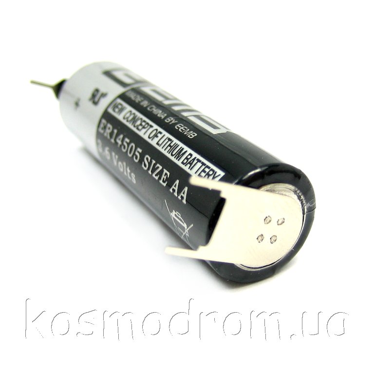 Li, SOCl2 батарея типоразмера AA номинальным напряжением 3.6 В ёмкостью 2.7 Ач. выводы: на плату Траб: -55...85 °C