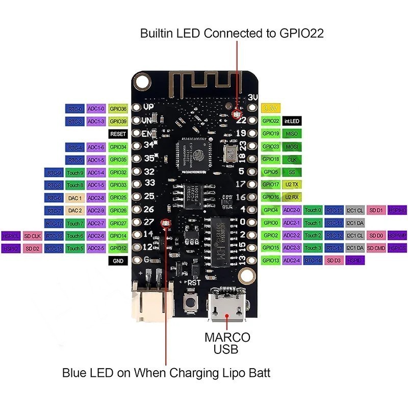 Фото может отличаться от реального вида предмета, но это не влияет на основные характеристики изделия | Модуль WI-FI ESP32 REV1 Micro USB LOLIN32, Micro USB, U: 2,2 … 3,6 V,flash memory: 4Mb