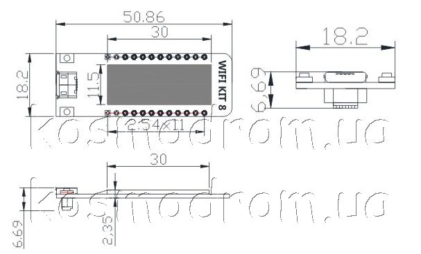 Модуль WI-FI: Встроенная 32MByte Flash, Wi-Fi антенна, 0,91-дюймовый OLED-дисплей, CP2014 USB интерфейс, поддержка среды разработки Arduino и NodeMCU.