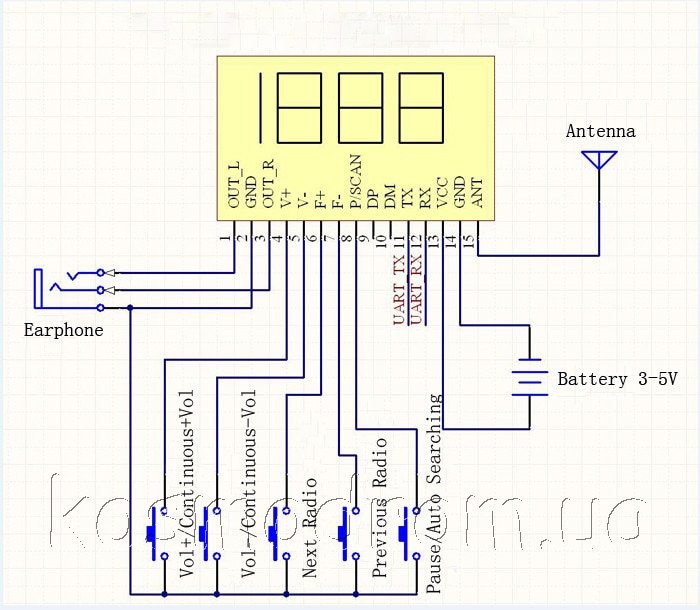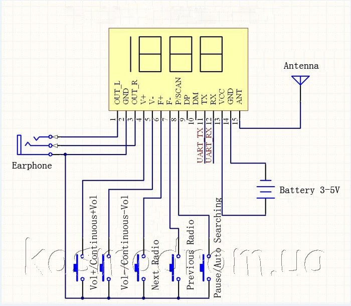 Встраиваемый FM тюнер имеет отличные параметры: Диапазон частот FM 87 - 108 мГц с выходной мощностью 500 мВт с функциями DSP, PLL и LCD-экраном.
