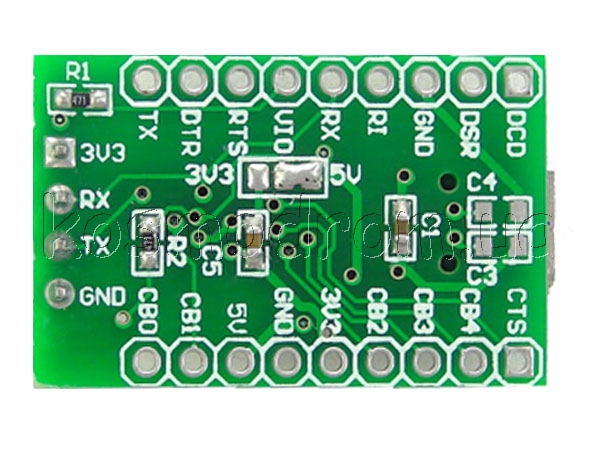 - Разъемы выводов расширения, подключенные к выводам FT232RL, расположены на