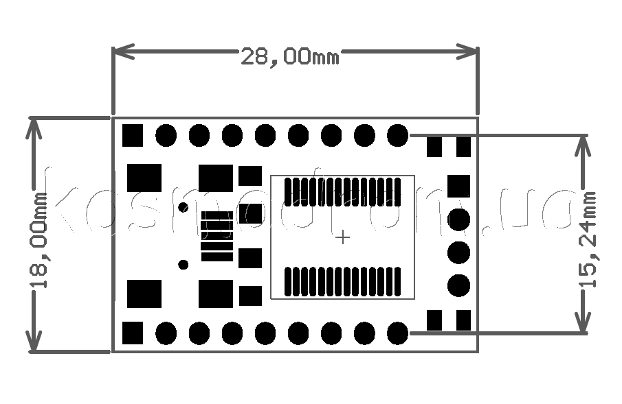 расстоянии 15,24мм, что дает возможность применыть модуль в любой макетной
