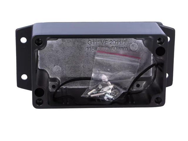 Фото может отличаться от реального вида предмета, но это не влияет на основные характеристики изделия | Корпус G111MFBK-IP67 Корпус герметичный, универсальный, алюминиевый, с креплениями, длина 115мм, ширина 65мм, высота 55мм. IP67, ADC-10 (JIS)