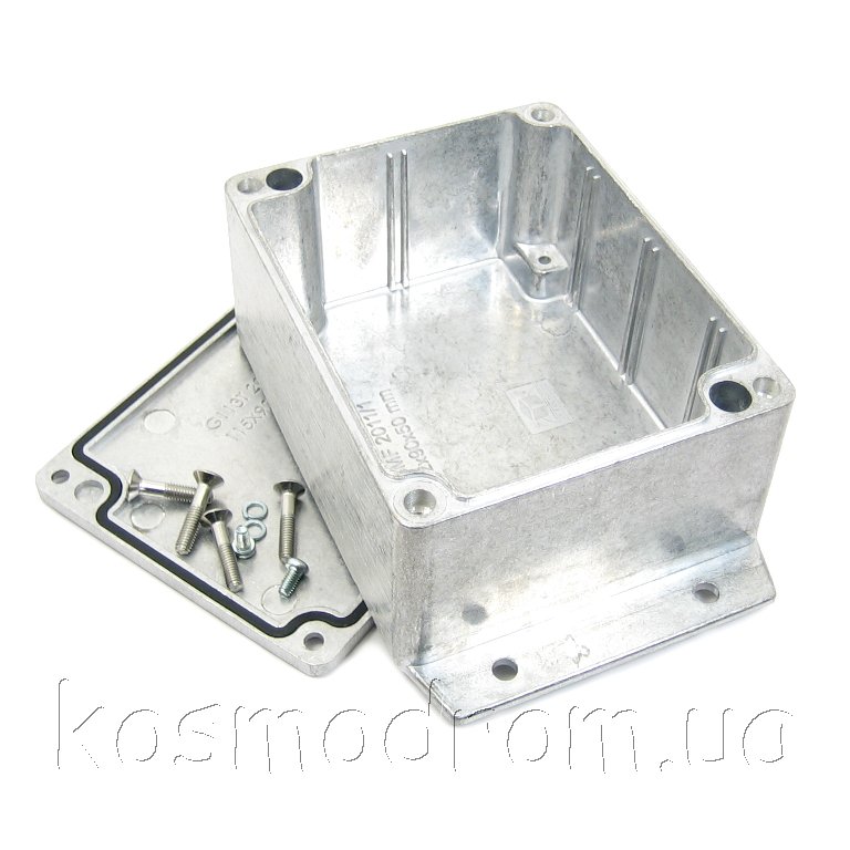 герметичный корпус натурального алюминиевого цвета с фланцами для